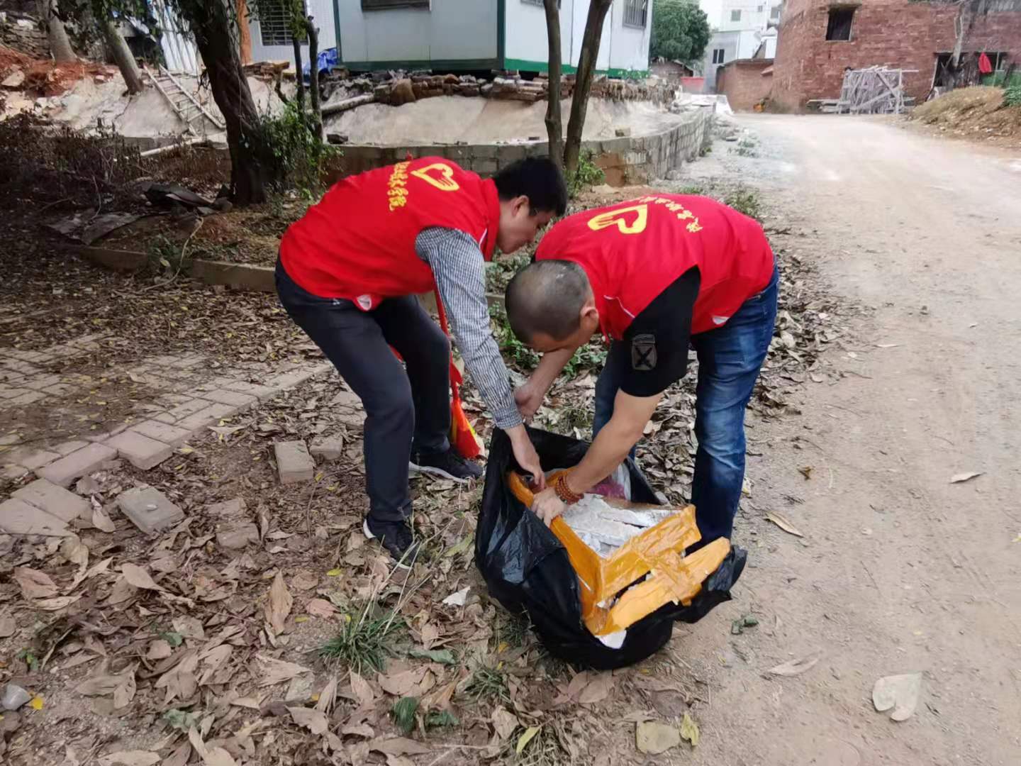 身穿醒目的红色志愿服,代表了无私奉献。党员志愿者发扬了不怕脏、不怕苦、不怕累的精神,拿起工具,重点对包联村的村道、卫生垃圾死角、绿化带垃圾等进行了集中清扫,并对村头的宣传栏、“牛皮癣”进行了深度清理。虽然有些垃圾死角处因堆放的时间长,清理难度较大,但志愿者们不怕脏、不怕累,经过一个多小时辛勤劳动,将包联片区打扫得干干净净。