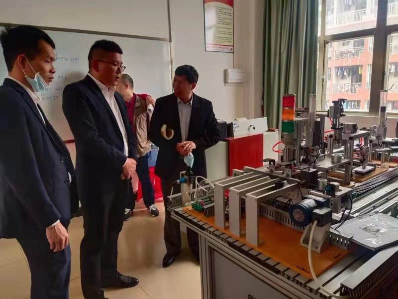 3月22日下午, 格力智能装备有限公司营销中心总监陈海涛一行三人到我校考察机电信息系先进的教学设备设施,并就“数字化工厂装调与运维”1+X证书制度试点、订单培养、智造先进实训场(室)建设等校企合作事宜进行了探讨交流,形成了基本共识。学校党委书记高鹏,机电信息系领导王开、彭树福以及相关专业老师参加了会谈。