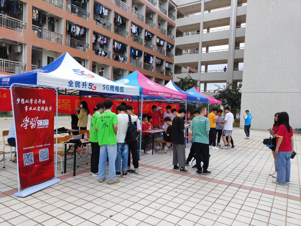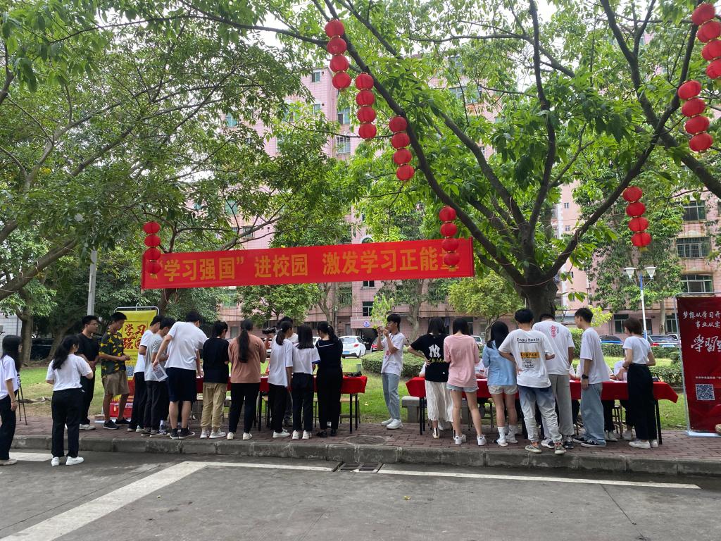 梦想从学习开始,事业从实践起步。为进一步推动建好用好“学习强国”学习平台和广东学习平台,充分发挥“学习强国”在学校政治理论学习、思想政治教育、科学知识传播、校园风采展示中的重要作用。4月8日下午,茂名职业技术学院在南北校区同时举办“学习强国”学习平台线下宣传推广活动,通过摆放宣传展架、发放宣传小礼品、现场讲解操作等多种形式,积极动员全校师生下载注册“学习强国”APP,加入校级学习组织,方便随时在线学习,激发学习正能量。