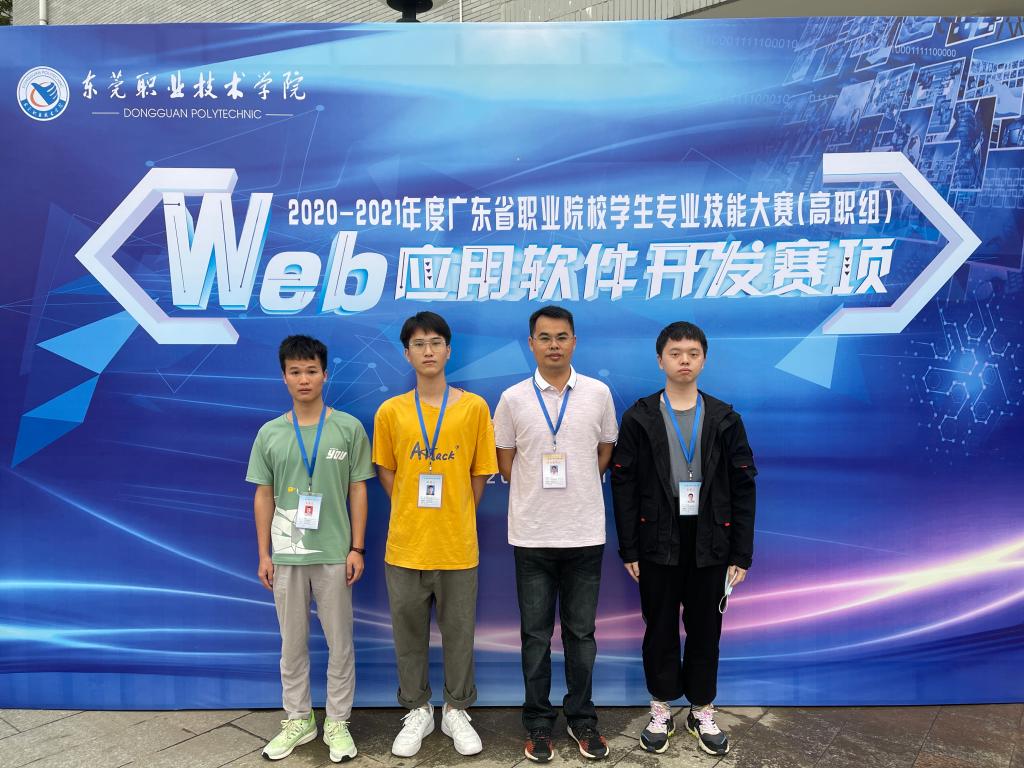 近日,2020-2021年度广东省职业院校学生专业技能大赛“Web应用软件开发”赛项比赛结果新鲜出炉。我校计算机工程系张劲勇、付玉珍老师指导的参赛队伍与来自全省67支队伍200多名选手同场竞技。在激烈紧张的比赛中,我校选手沉着冷静,运用过硬的专业技能奋勇拼搏,最终荣获该赛项一等奖。