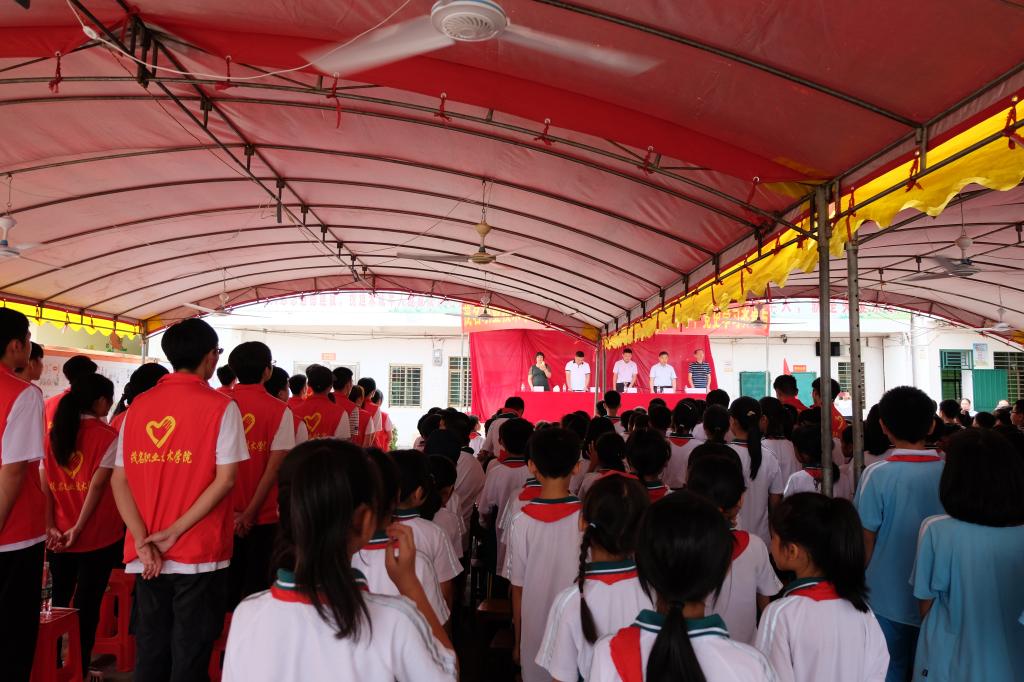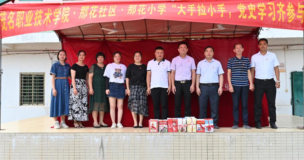 那花小学领导班子代表学校接受捐赠,感谢茂名职业技术学院一直以来对那花小学工作的支持与关心,高度赞扬一届届志愿者们的支教活动。那花小学表示,今天茂职院志愿者带来的不仅仅是红色书籍,更是红色传承的接力棒、爱心的接力棒,学校一定会以此次捐赠活动为契机,积极开展多种形式的“传承红色基因”读书活动,让那花小学的学生们从小立志向、有梦想,爱学习、爱劳动、爱祖国,扣好人生第一粒扣子,成长为新时代合格的接班人!