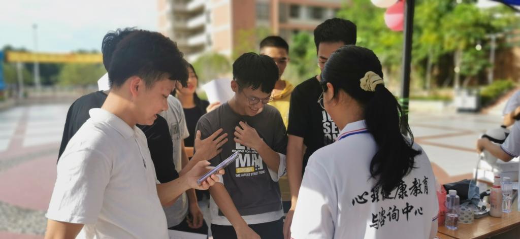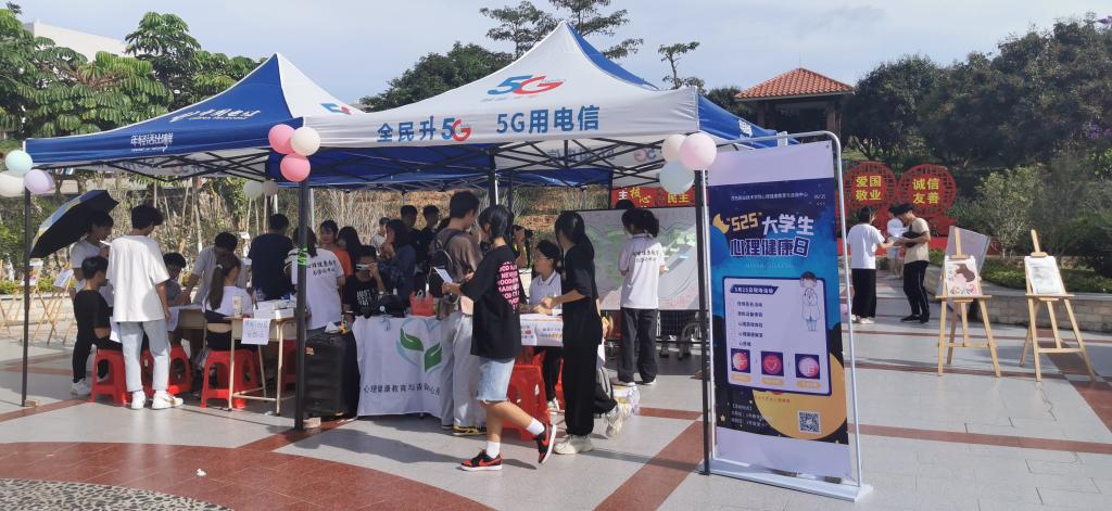 5月25日下午,学校开展“5.25”全国大学生心理健康日主题活动,分别在南校区第二食堂小广场和北校区校道进行。本次活动由学生处心理健康教育与咨询中心主办,由学生处助理团朋辈心理辅导中心和大学生心理健康协会承办,同时得到各系部志愿者的大力支持,南北两个校区有超过500名同学参加现场体验活动。