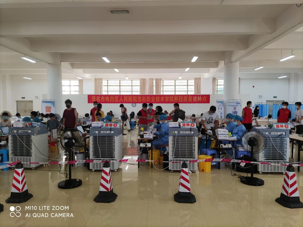 学校对首批符合接种条件、有接种意愿的师生在南校区图书馆、茂名市体育中心集中分批进行了新冠疫苗接种。据统计,5月12-25日期间,学校共接种8946人,其中教职工接种292人,学生接种8654人,接种率达90.55%。