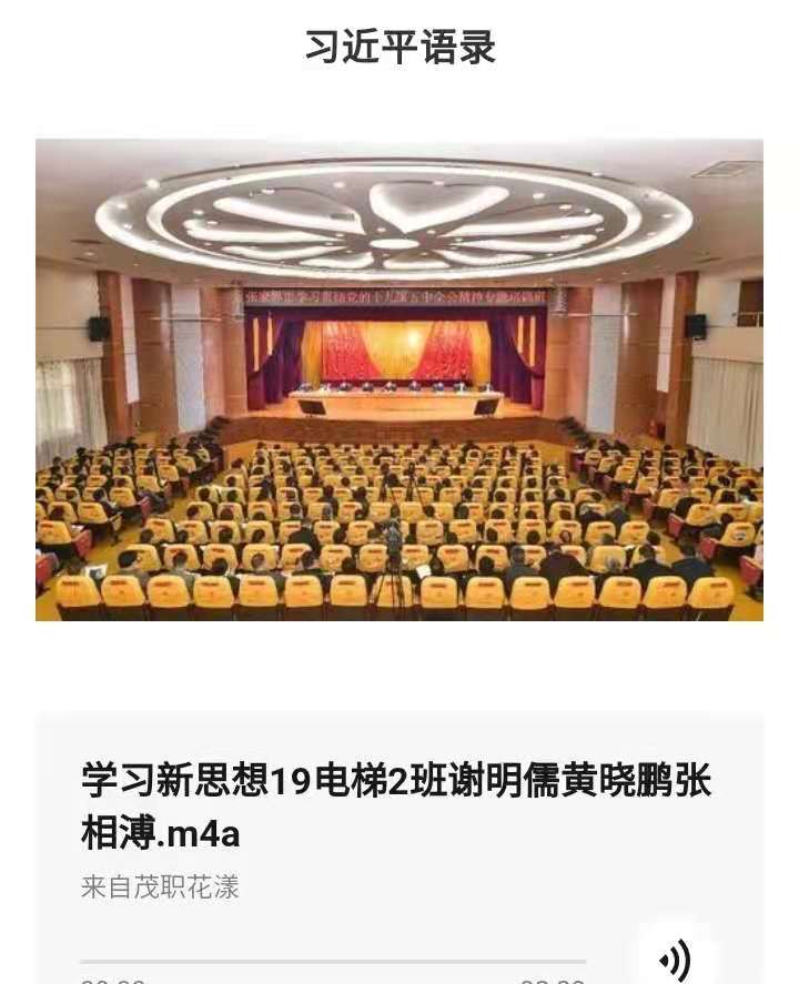 本次线上朗读比赛的成功举办,不仅为茂职院师生提供了展现自我、提升自我的机会和平台,营造了良好的学习氛围,掀起了学习新思想的热潮,更是让师生们在畅读新思想的过程中,汲取爱校爱岗的动力,涵养爱党爱国的家国情怀。(文/图:党委办)