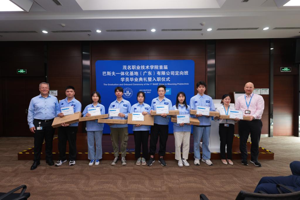 6月29日上午,茂名职业技术学院巴斯夫班2018级毕业典礼在上海市巴斯夫浦东基地顺利召开,党委委员、副院长曾萍,教务处、化学工程系负责人等一行四人代表学校参加了本次活动,巴斯夫亚太区特性材料事业部运营全球副总裁Thomas Grassler博士、巴斯夫亚洲大型项目人力全球副总裁Markus Faller博士及巴斯夫的其他员工代表也参加了本次活动。