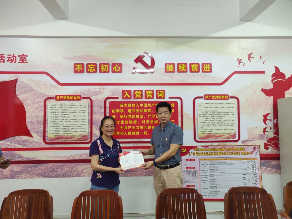 曾萍为党员颁发政治生日卡片