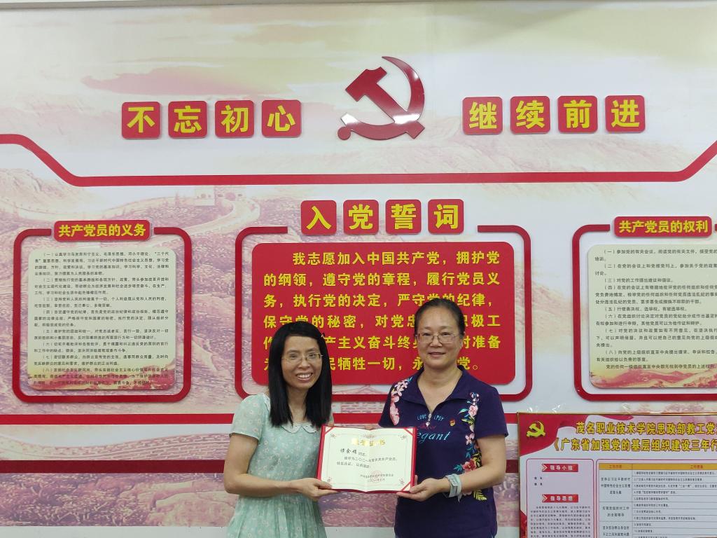 曾萍为优秀党员颁发荣誉证书