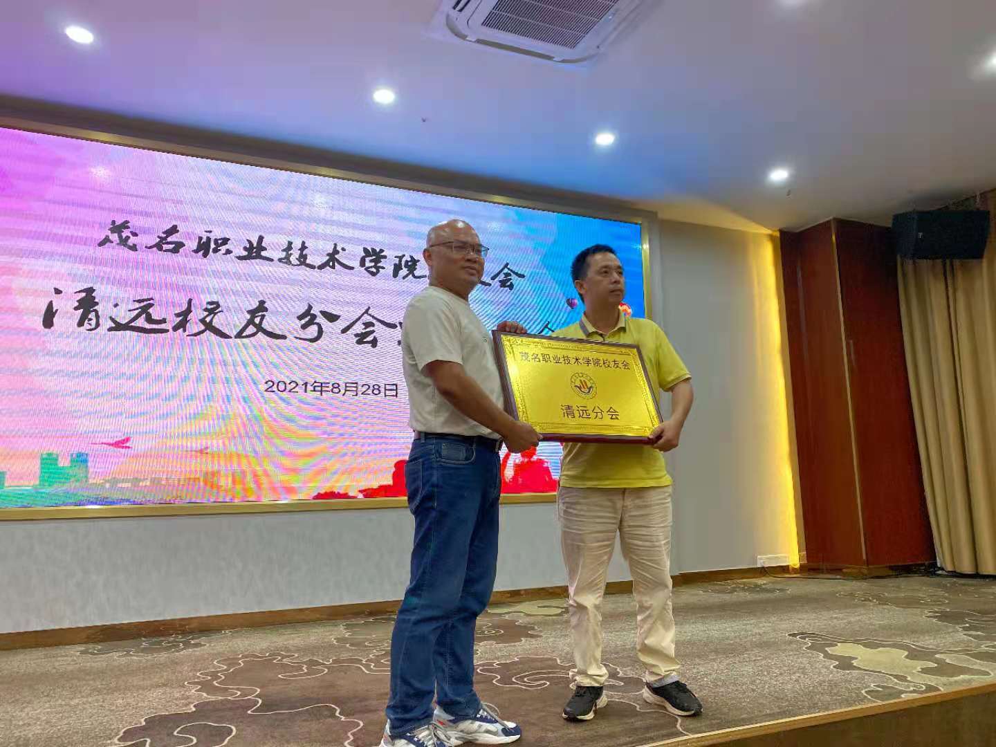 成立会上,88工民建1班校友,广东冠达公路养护有限公司、广东冠达交通建设有限公司董事长黄冠同志代表筹备组简要介绍了清远分会的筹备情况。谢达明会长宣读了关于同意成立茂名职业技术学院校友会清远分会的批复。随后,大会推举产生了清远分会工作机构成员。会长:黄冠,副会长:陈其峰、李锡泉,秘书长:江高立,副秘书长:张莹莹。谢达明向校友会清远分会授牌并向机构成员颁发了聘书。