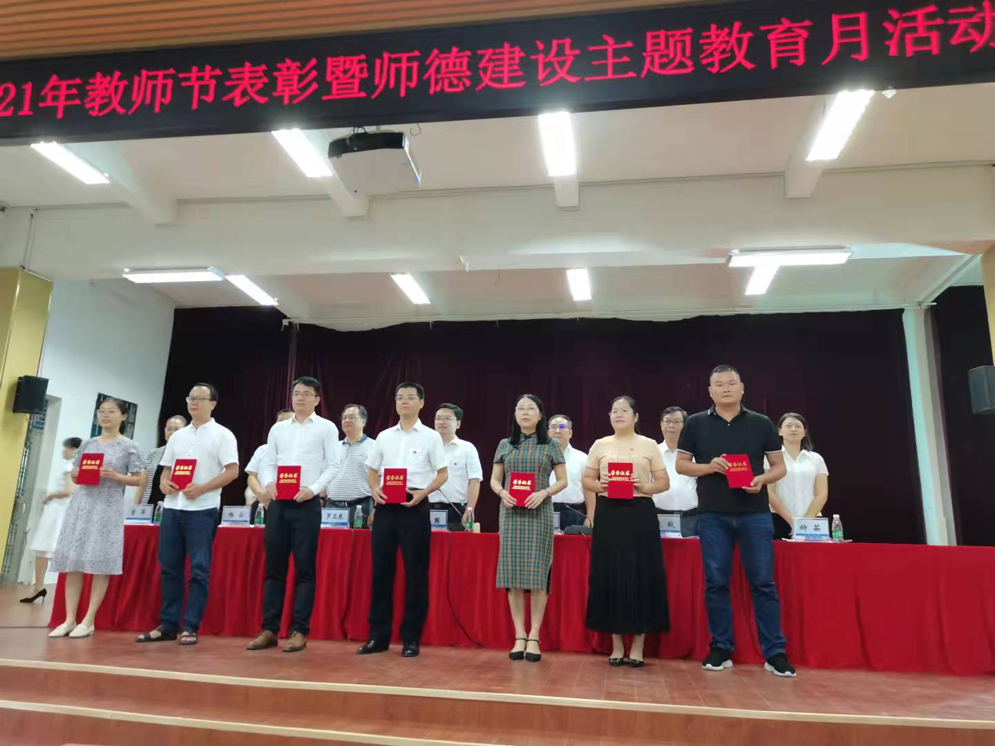 9月9日下午,在第37个教师节来临之际,学校在北校区礼堂召开2021年教师节表彰暨师德建设主题教育月活动动员大会。今年教师节的主题是:赓续百年初心、担当育人使命。学校领导,学校系(部)负责人、机关处室负责人和各系党总支副书记、副主任、教研室主任、教师代表以及受表彰的教职工参加了会议。会议由学校党委副书记、院长张庆主持。