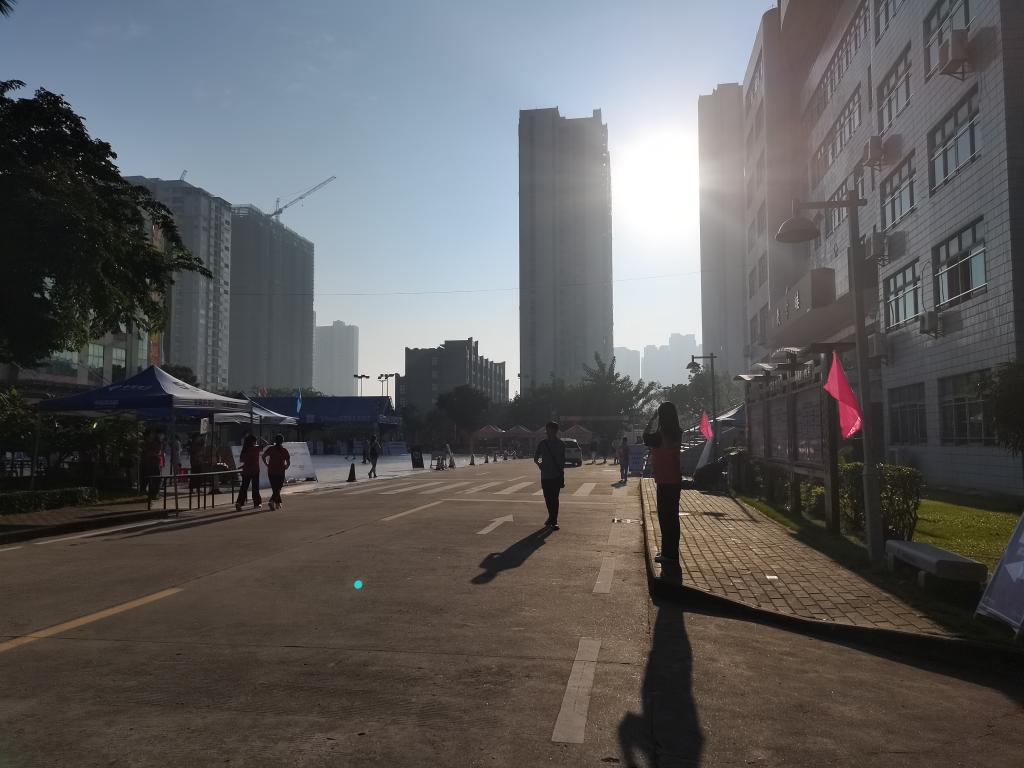 工作人员、师生志愿者迎着晨光开始了忙碌的工作