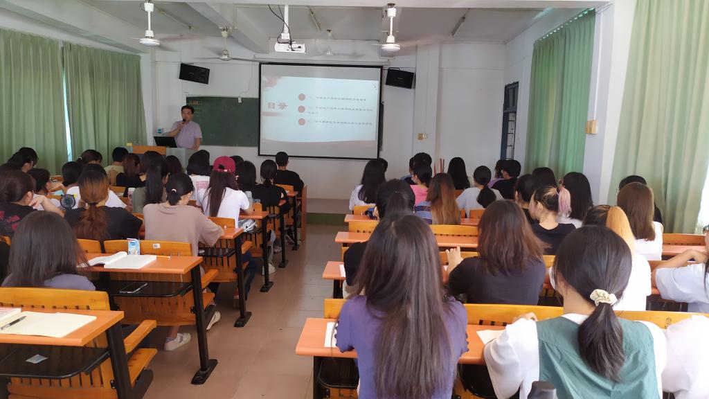9月15日上午,学校党委书记扶国在文明北校区1号教学楼为学生讲授“思政第一课”,人文与传媒系2020级160多名学生聆听了课程。