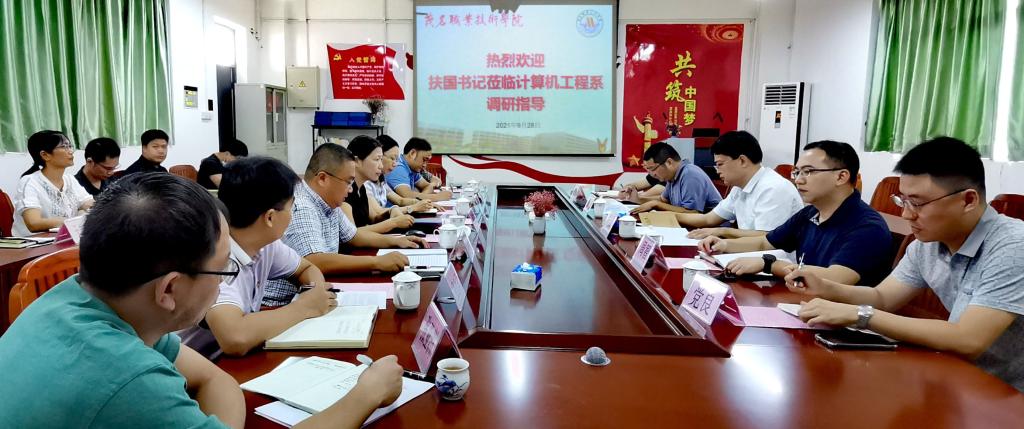 9月28日上午,学校党委书记扶国到计算机工程系调研,党委办、人事处、教务处有关同志陪同。计算机系领导班子成员、教工与学生支部支委、各教研室(专业)主任以及辅导员参加座谈。