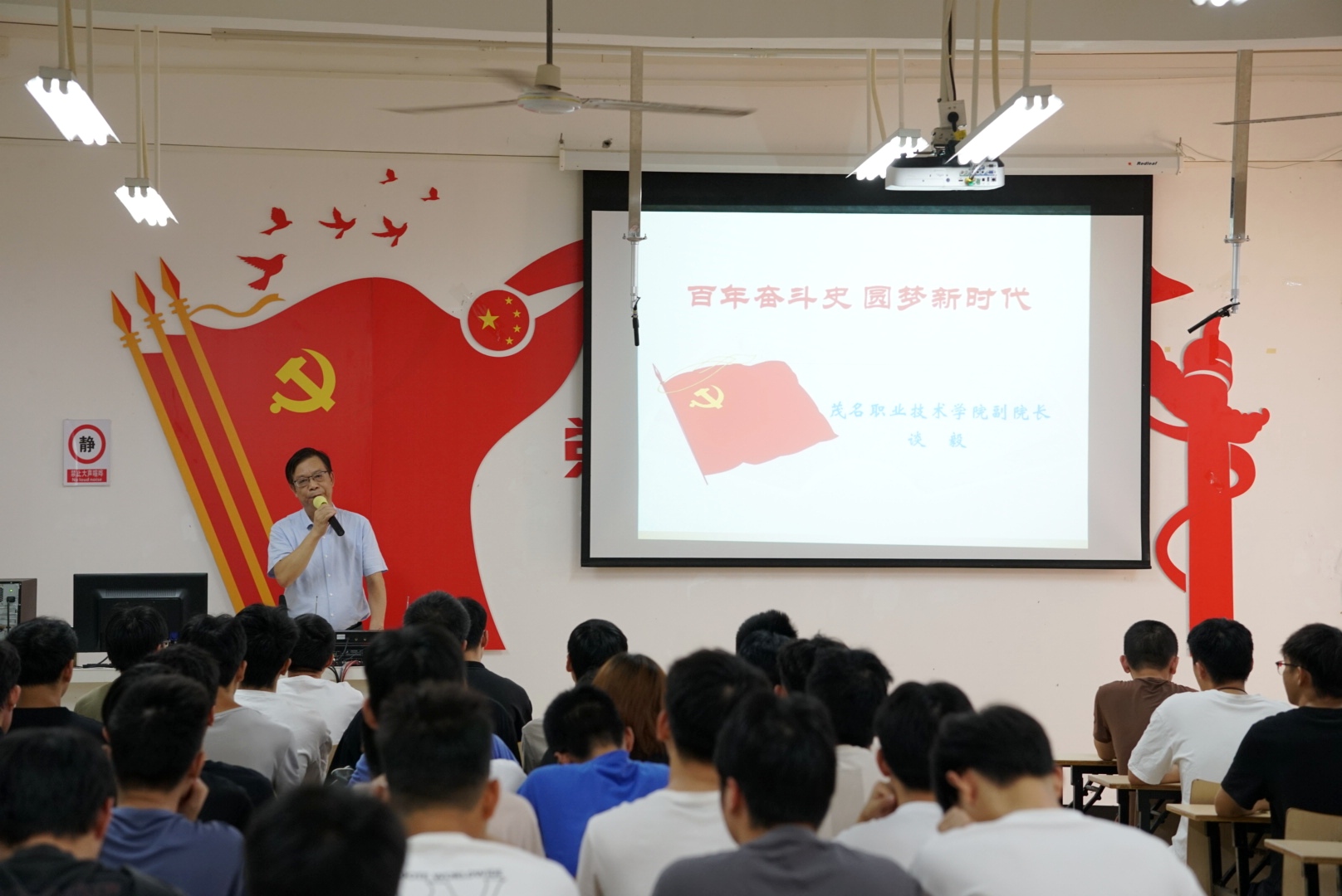 谈毅旁征博引、深入浅出的以“百年奋斗史,圆梦新时代”为主题,以党的“四史”内容为主线,分三个部分展开论述:第一部分以“百年梦想,庄严承诺”开篇,第二部分以“百年奋斗,艰苦卓绝”论述,第三部分以“使命担当,圆梦中国”点题,带领同学们重温了建党百年的光辉历程,深刻阐释了“中国梦”的科学内涵。谈毅指出青年人是国家的希望,是民族的未来,勉励学子们要坚定理想信念,追求人无我有、人有我优的信念,将责任和义务常记于心,外化于行,以“青年梦”托起“中国梦”的强国抱负,切实担负起实现“中国梦”的伟大理想。