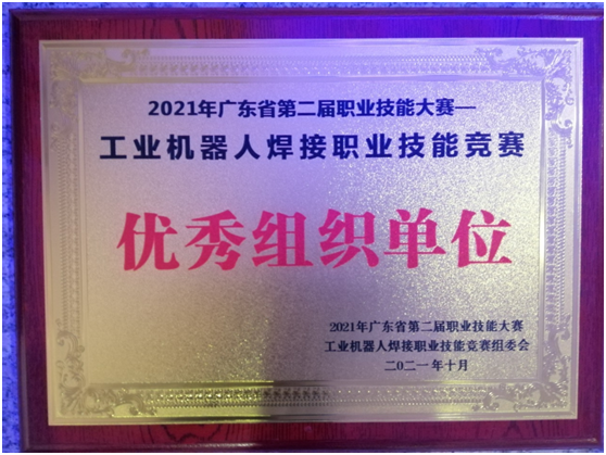 10月22日-24日,我校机电学子首次参加由广东省人力资源与社会保障厅主办、江门市新会技师学院承办的广东省第二届职业技能大赛“工业机器人焊接职业技能竞赛”,获得了三等奖及“优秀组织单位”的好成绩,成为参赛高职院校唯一获奖的队伍。
