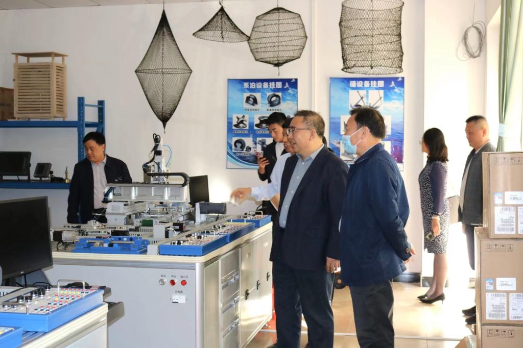 曹振峰一行在张庆陪同下参观了机电实训基地。(文/图:学院办)