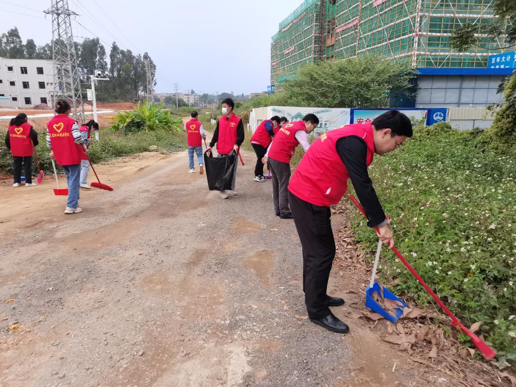 扶国书记带领师生志愿者在红毛岭村清洁村道