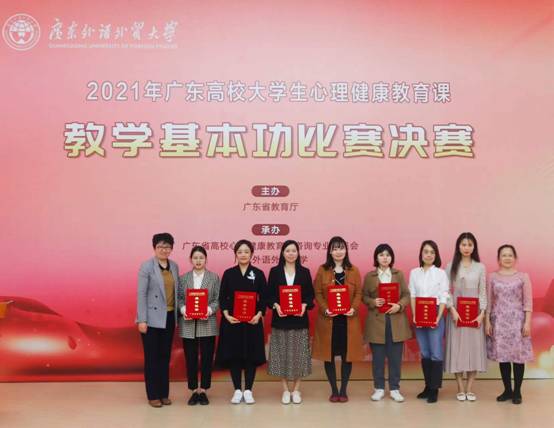 根据《粤教思函[2021]26号广东省教育厅关于公布2021年度广东高校大学生心理健康教育课教学基本功比赛结果的通知》,比赛分为片区入围赛和决赛。12月1日至5日,在广州城市理工学院举办的第十一片区高校大学生心理健康教育课程教学基本功比赛入围赛评审中,杨木兰老师在十一片区获一等奖并被推荐参加省决赛;张加薇老师在十一片区获二等奖;12月11日,在广东外语外贸大学南校区举办的决赛中,经过激烈角逐,杨木兰老师获得三等奖。