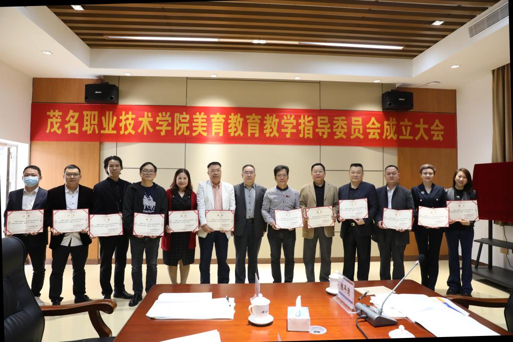 成立大会上,播放了学校宣传片,宣读了《关于成立茂名职业技术学院美育教育教学指导委员会的通知》,张庆为学校第一届美育教育教学指导委员会主任委员、副主任委员和其他委员颁发了证书和客座教授聘书。
