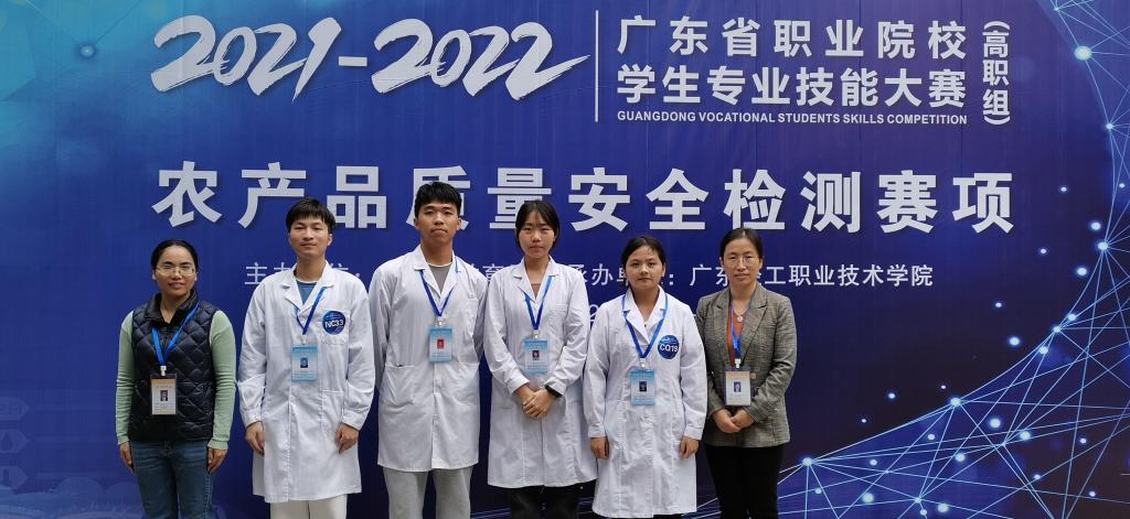 近日,由广东省教育厅主办、广东轻工职业技术学院承办的2021-2022年度广东省职业院校学生专业技能大赛农产品质量安全检测赛项成绩公布,我校两支参赛队伍榜上有名。食品检测检测技术专业群2020级学生陈庆树、徐俊杰获得一等奖,彭智琳、罗秀珍获得三等奖。本次比赛全省共有54支队伍参赛,此次成绩也是我校在该赛项上首次获得一等奖。