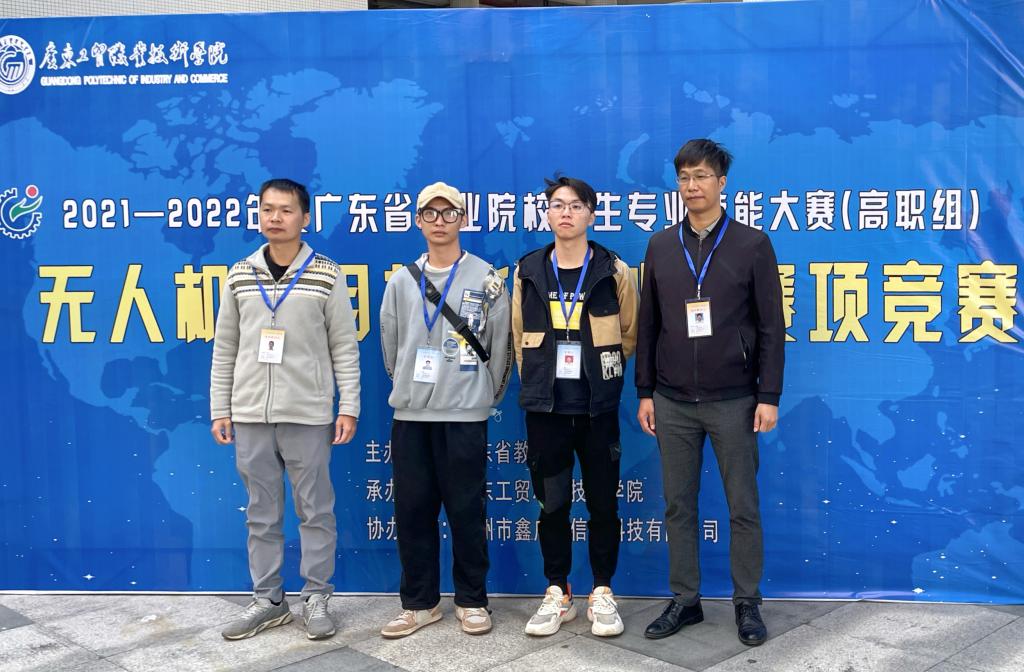 1月5日-1月7日,在广东工贸职业技术学院举行了2022年广东省学生技能大赛“无人机应用技能与创新”赛项。我校人文系吴家豪、计机系沈大旺、机电系陆叶和梁竣槐等老师指导的肖晋杰和邹嘉裕、叶坤彬和林国强两个团队,顽强拼搏,克服训练时间紧、设备短缺等困难,最终获得二等奖和三等奖。