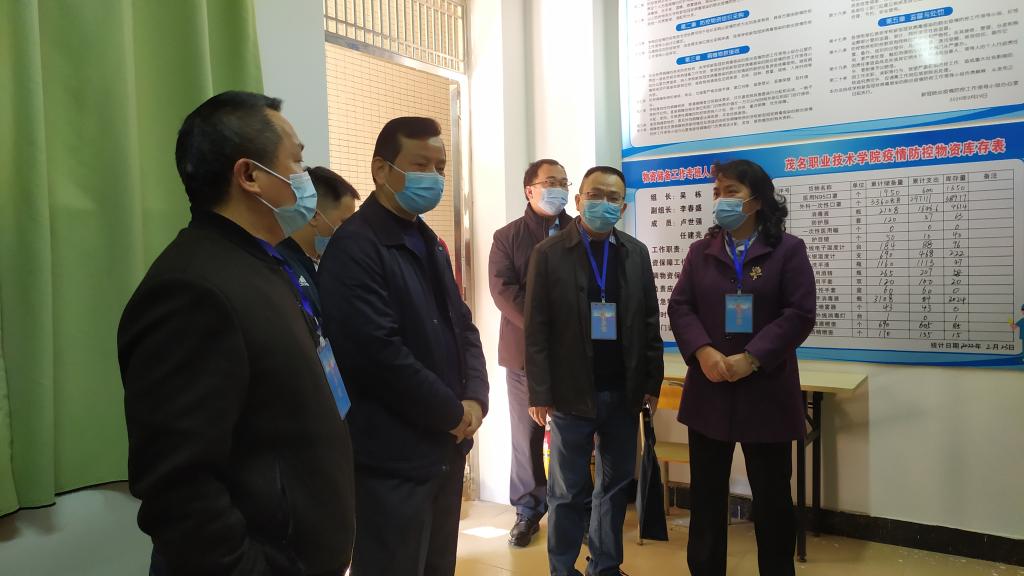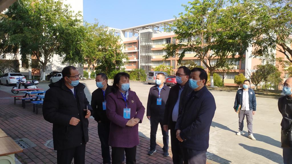 2月25日上午,茂名市新冠肺炎疫情防控指挥部办公室校园疫情防控工作专班在市委教育工委委员、市教育局党组成员、副局长麦丽敏带队下,到我校南校区进行校园疫情防控工作检查。副院长、防控办主任杨云,学院办、总务处、学生处、防控办等相关人员陪同检查。