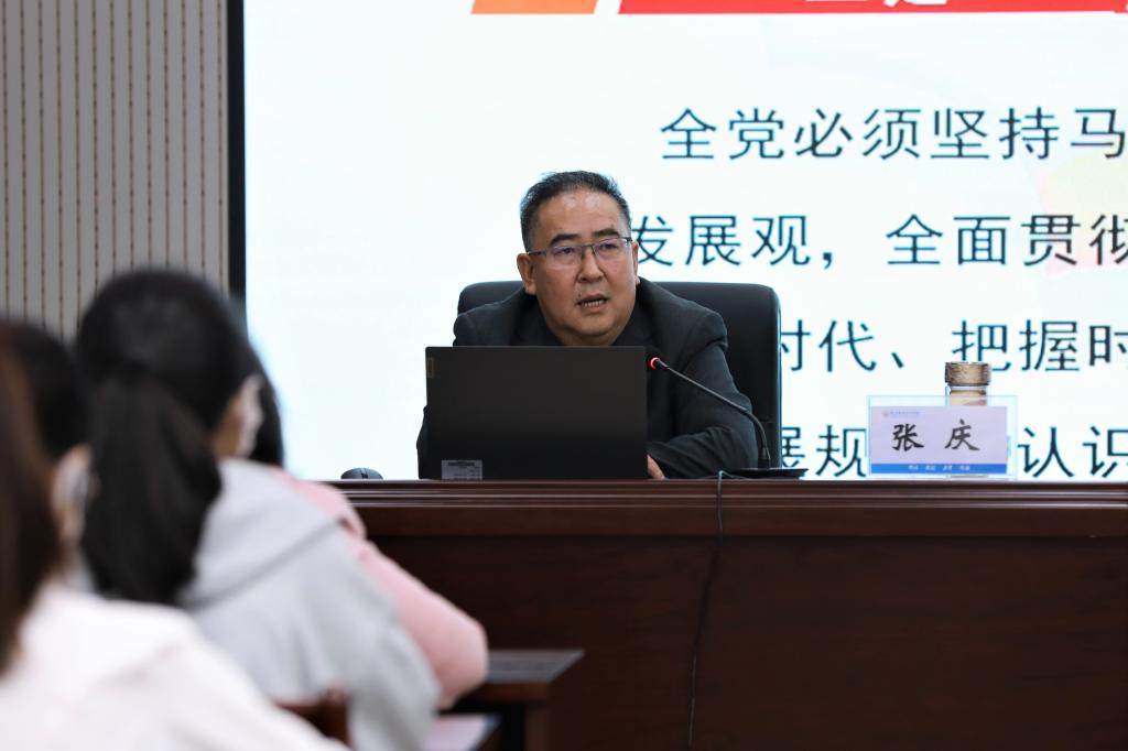 张庆从中国共产党历史的三个《决议》(《关于若干历史问题的决议》、《关于建国以来党的若干历史问题的决议》、《中共中央关于党的百年奋斗重大成就和历史经验的决议》)出发,以故事叙述的方式深入浅出为入党积极分子讲授了中国共产党的百年奋斗历程取得的重大成就和历史经验。面对世界百年未有之大变局和各类重大的风险挑战,全面建成社会主义现代化强国,实现中华民族伟大复兴,绝不是轻轻松松,敲锣打鼓就能实现的,我们党还要继续行稳致远走好新的“赶考之路”。最后,张庆引用了今年3月1日习近平总书记在中央党校(国家行政学院)中青年干部培训班开班式上的重要讲话与同学们共勉,勉励同学们要牢记习近平总书记嘱托,立志向,定目标,奋发图强,努力学习,成为有理想、有本领、有担当的新时代青年。
