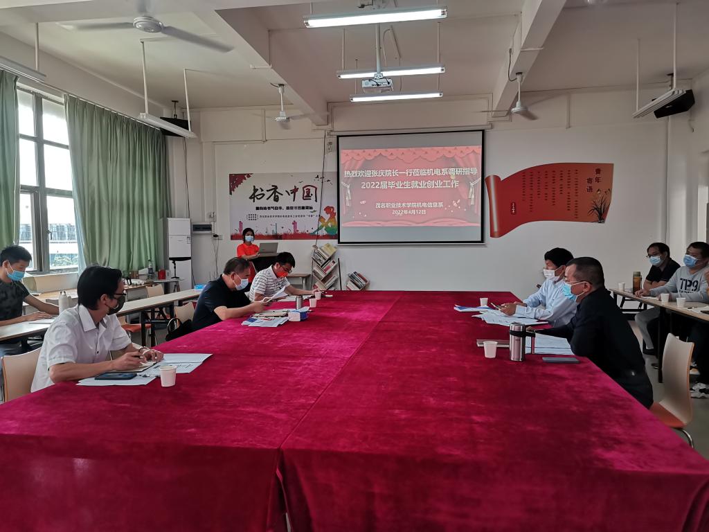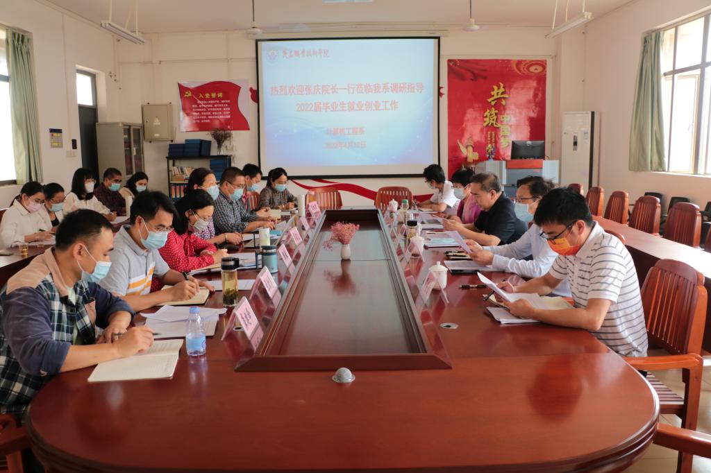 为深入贯彻落实党中央、国务院关于高校毕业生就业工作决策部署,了解各系落实4月7日学校招生工作会议精神情况,4月11日至13日,党委副书记、院长张庆深入各系调研2022届毕业生就业工作,学校相关领导及学院办、招生就业处有关人员陪同调研,各系班子成员、专业教研室主任、毕业年级辅导员、毕业班班主任参加了调研。
