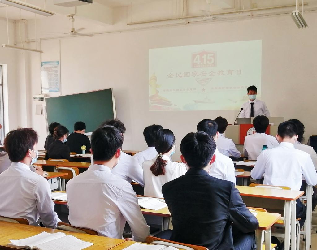 国家安全教育日前后,学校党委中心组以学习习近平总书记关于国家安全重要论述为第一议题,进行集中学习。学校党委办组织全校师生参加“百年再出发 喜迎二十大”国家安全教育线上知识竞赛,在全校掀起了抢答题、赢奖品的热潮。主动联系市国安支队相关部门,领取了一批国家安全教育宣传海报和宣传册子,下发到各系。学生处组织各系各班级开展国家安全日主题班会活动,观看视频、讲解国家安全知识、畅谈感想,力求国家安全教育入脑入心。思政部学生党支部组织20级入党积极分子、师生代表等80多人,分成两个会场,观看国家安全局谍战微电影《密战》《猎狐》《影子猎手》,大大提高了师生的敌情意识、保密意识、防范意识。4月15日,由党委办主办,经济管理系学生党支部承办的国家安全教育日校园设点宣传活动在北校区举行。入党积极分子、学生志愿者在校园内发放宣传小册子,向广大师生普及《国家安全法》《反间谍法》等法律的制定背景、重要意义和主要内容。