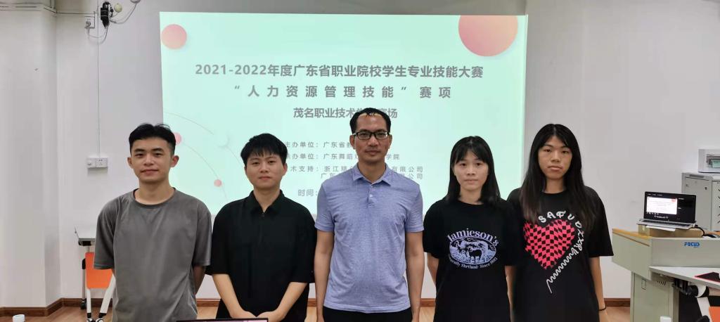 人文系高度重视,组织师生积极参加赛事选拔。通过校级沙盘演练培训课程、模拟竞赛等环节,人文与传媒系2020级人力资源管理专业4名学生脱颖而出,代表我校参加了此次比赛。在指导老师梁辉良和车德昌悉心指导下,代表队在赛前进行了集中训练,克服了重重困难,积极备战。经过激烈比拼,由梁昇南、翟子滢、黄春婵和肖广明组成的茂名职业技术学院代表队荣获“人力资源管理技能”赛项一等奖。