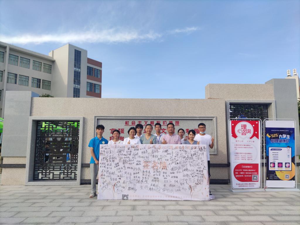 5月21日下午,学校在南校区尚善广场开展“5.25”全国大学生心理健康日主题活动。本次活动由学生处心理健康教育与咨询中心主办,由学生处助理团朋辈心理辅导中心和大学生心理健康协会承办,同时得到各系部志愿者的大力支持,活动当天有将近300名同学参加现场体验活动。