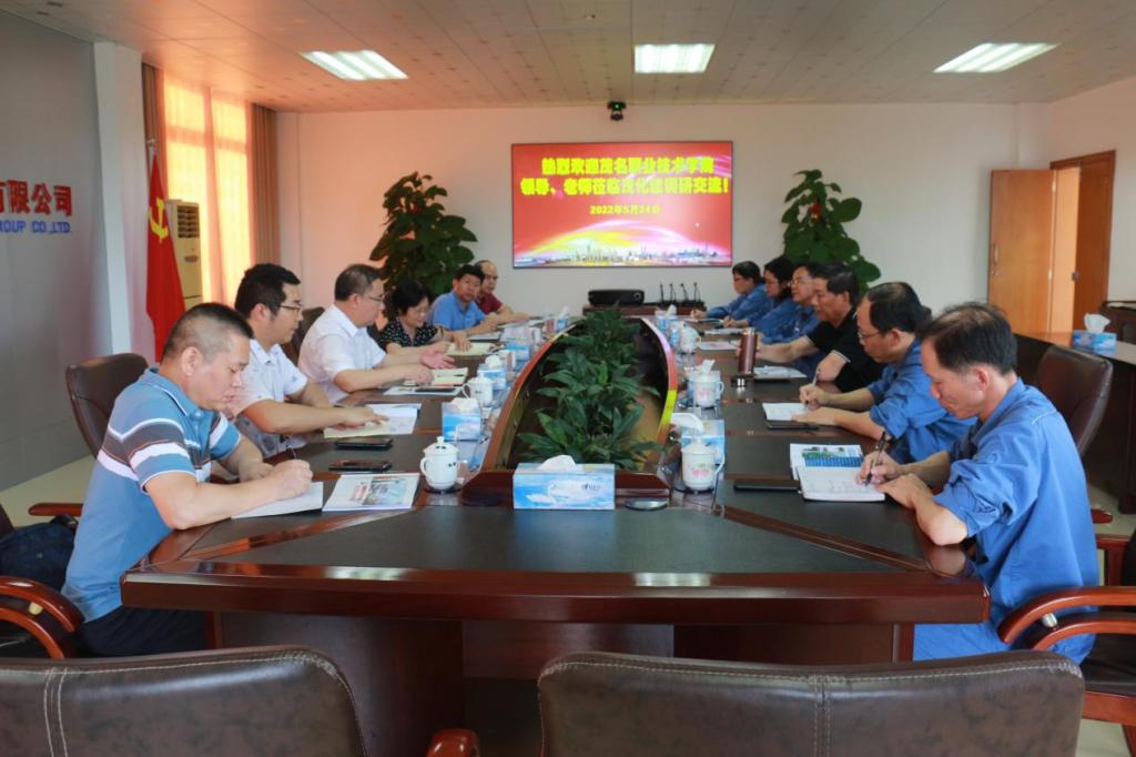 为扎实推进教育部、省教育厅关于全国高校书记校长访企拓岗促就业专项行动计划,推动我校毕业生更高质量、更加充分就业,5月24日下午,学校党委副书记、院长张庆带队赴广东茂化建集团开展调研,受到公司党委书记、董事长莫观华和人力资源部总经理刘再繁的热烈欢迎。学校党委委员、副院长曾萍,机电信息系、教务处的负责人以及骨干教师参加了座谈会,校企双方进行了坦诚深入的交流,并就开展订单培养、校企共编教材等合作事宜达成了明确共识。