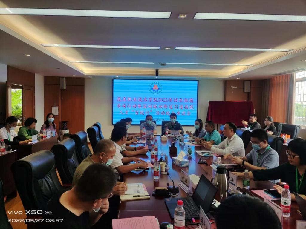 为贯彻落实党中央、国务院关于高校毕业生就业工作的决策部署和教育部办公厅发布的《关于开展全国高校书记校长访企拓岗促就业专项行动的通知》,《广东省教育厅关于印发开展高校书记校长访企拓岗促就业专项行动方案的通知》要求,加快健全高校毕业生市场化社会化的就业创业工作机制,深入落实就业工作“一把手”工程,充分发挥高校书记、校(院)长以及校领导班子成员带头做好毕业生就业工作的重要示范作用,带动学校全员深度参与做好高校毕业生就业工作,充分调动各方面资源,全面深化校企合作、供需对接。5月27日,深圳市龙岗区坂田街道办事处公共事务中心廖建州主任携街道20家企业一行27人来我校开展“高校访企拓岗暨坂田街道引进技能人才‘百校行’”共发展座谈会,活动取得圆满成功。