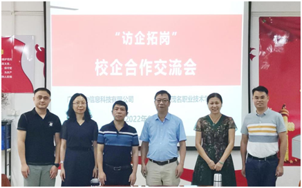 6月7日,学校党委委员、副院长谈毅带队到广州国为信息科技有限公司开展校企合作交流,计算机工程系主任周洁文、副主任及相关教师参加交流。广州国为信息科技有限公司总经理黄世旭热情接待了谈毅一行。
