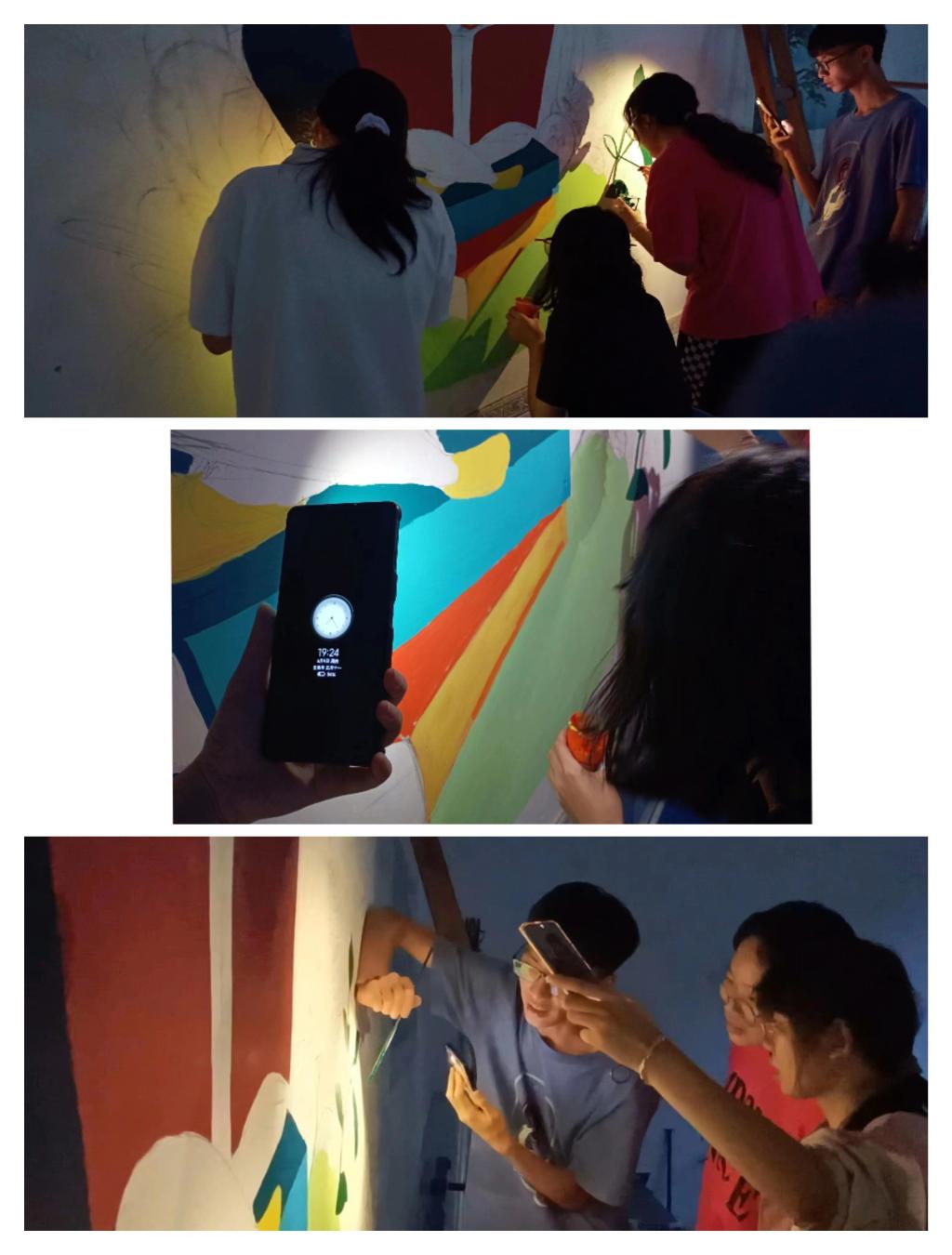 该活动将分多个阶段逐步开展,本次到访属于调研设计阶段。学校派驻该村的第一书记何林带领师生们吃住在村里,用脚去丈量村道,用手去抚摸甜柿,用心去感受北梭村的独特魅力。经过一周时间的采风取材,团队内部的设计辩论,与村支书的反复探讨,总体设计阶段已经完成初稿。同时,因北梭小学准备改建一个开放式的阅览室,应校方所求为其设计儿童墙画,并即时完成主体制作。