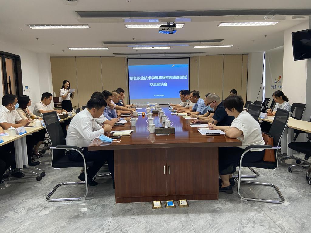 交流会上,黄永清对谈毅一行的到来表示热烈欢迎,并向大家介绍了碧桂园集团粤西区域近5年来的高速发展,尤其是智能建设方面的发展前景。黄永清表示,将结合茂职院土木工程系各专业特点,针对性的开展深度校企合作,实现企业与学校双赢局面。在交流中,碧桂园集团粤西区域郭英杰、营销总监李志铿、物业公司总经理陈鑫、入力总监杨学峰、办公室主任徐静、广东腾越建筑工程有限公司人力资源总监王博等公司领导作了相关业务交流,介绍了企业各部门的发展现状、产业优势以及未来的发展前景。校企双方还就土木工程系专业建设、人才培养方案、校企合作、产业工人培养、智能建造、学生认识实习、岗位实习、就业、双方合作互赢前景等方面进行了交流探讨,期待深度合作。