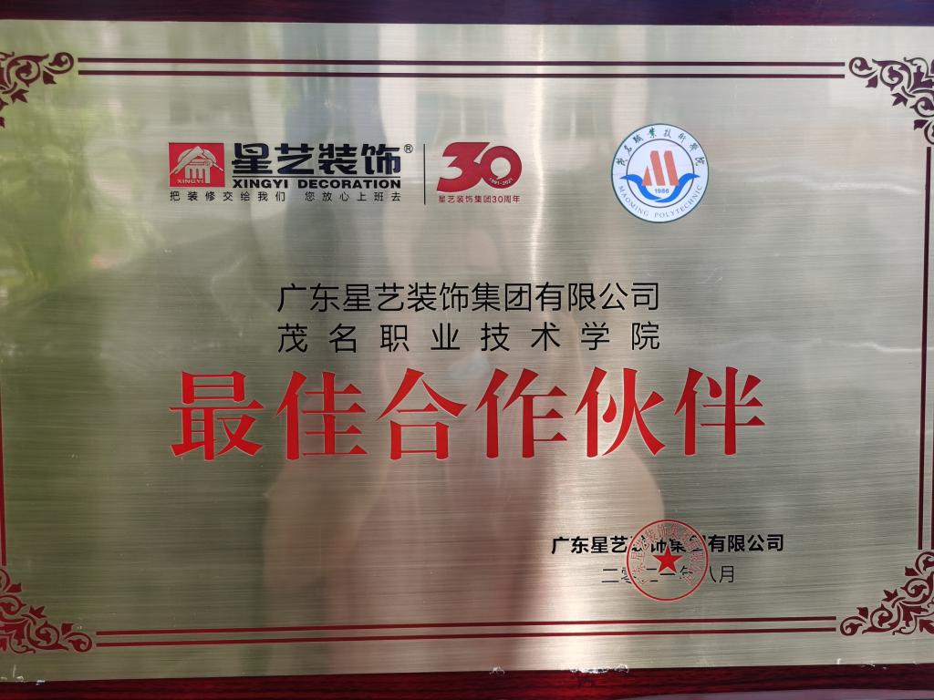 张庆一行参加了广东星艺装饰集团的30年总结表彰大会,鉴于我校在2017年与星艺装饰集团共建产业学院“星艺学院”以来,共建了省级校外实训基地、共建校内实训室,共同培养订单班人才超200人,为企业提供大量优质就业人才等,企业授予我校“最佳合作伙伴”牌匾。