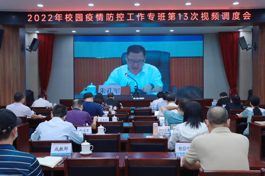 为统筹推进学校秋季学期开学和疫情防控工作,确保开学返校工作平稳有序,8月31日,省教育厅召开全省2022年校园疫情防控工作专班第13次视频调度会。学校在北校区图书馆多功能报告厅设分会场。学校领导,各单位(部门)主要负责人,各专班组长,保卫科、心理咨询中心负责人,防控办相关人员参加了视频会议。
