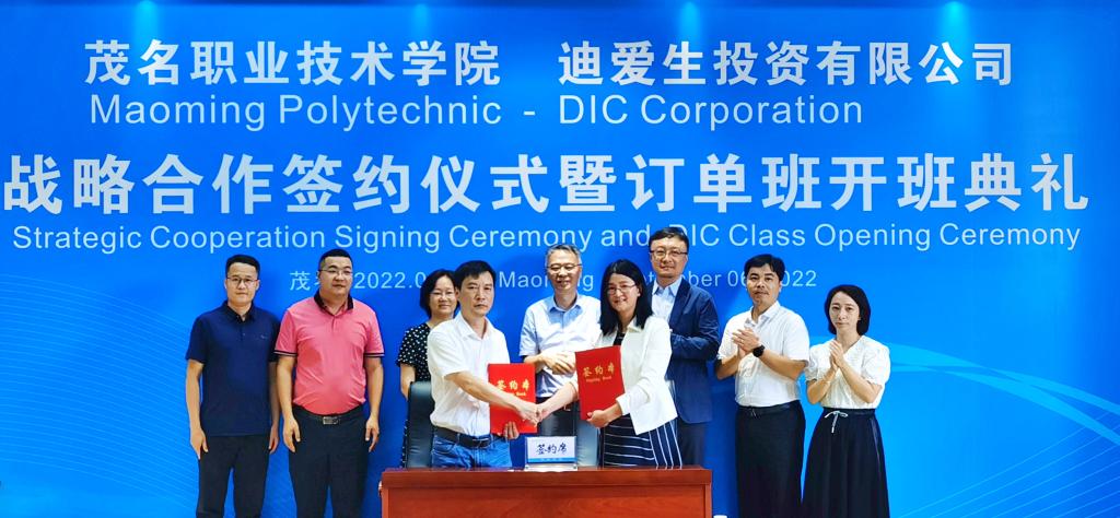 9月6日,茂名职业技术学院与迪爱生(DIC)投资有限公司校企战略合作签约仪式暨首届DIC订单班开班典礼在南校区举行。学校党委委员、副院长曾萍,迪爱生投资有限公司总经理毛坚伟、人力资源总监周修美、迪爱生合成树脂(中山)有限公司副总经理马宇航等人共同参加签约仪式。