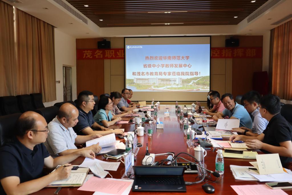 9月14日下午,受广东省教育厅委托,以华南师范大学教师教育学部副部长罗一帆教授为组长,华南师范大学省级中小学教师发展中心一行6人组成的专家组到我校调研全口径全方位融入式帮扶基础教育高质量发展实施情况,茂名市教育局教师发展中心继教部负责人吕达艺和人事科干部王辉宁陪同调研。学校党委委员、副院长曾萍出席调研会,人事处、教务处负责人,计算机工程系主任,校企办相关人员参加活动。