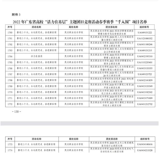 近日,2022年广东省高校“活力在基层”主题团日竞赛活动(春季)评选结果出炉,我校15个团支部荣获“千入围”项目。