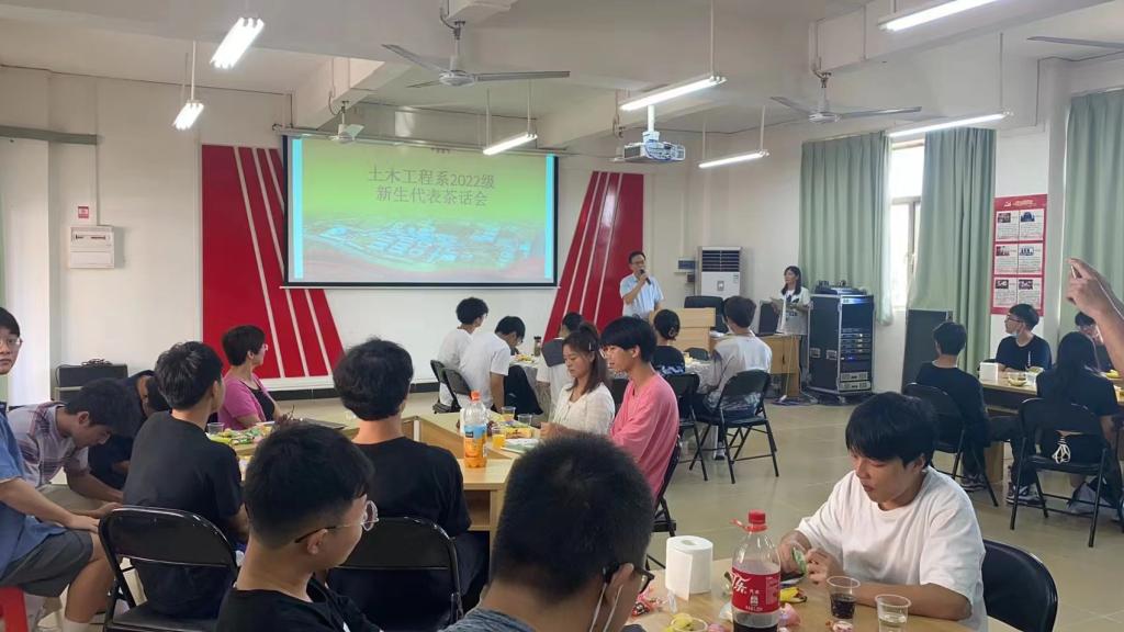 大学生是祖国的未来,民族的希望。10月3日,土木工程系在南校区党员活动室举办了2022级新生代表茶话会,党委委员、副院长谈毅受邀出席。会上,师生畅所欲言,气氛热烈、融洽、温馨、和谐,传递了学校对学生成长成才的关心、关爱、关怀。谈毅勉励新生们践行学校“价值观+知识+技能+创新”的人才培养目标,以饱满的精神状态和精神力量,做一个德、智、体、美、劳全面发展的大学生,努力成长为一个德才兼备的人才。国庆期间,学校各团支部在紧锣密鼓地筹备“喜迎二十大 永远跟党走 奋进新征程”的特色主题团日活动,不甘落后地排演主题明确、内容丰富、形式多样的活动节目。青年学子们以赤诚爱国心祝福祖国,以真挚爱国行献礼祖国,以青春之力迎接党的二十大胜利召开。