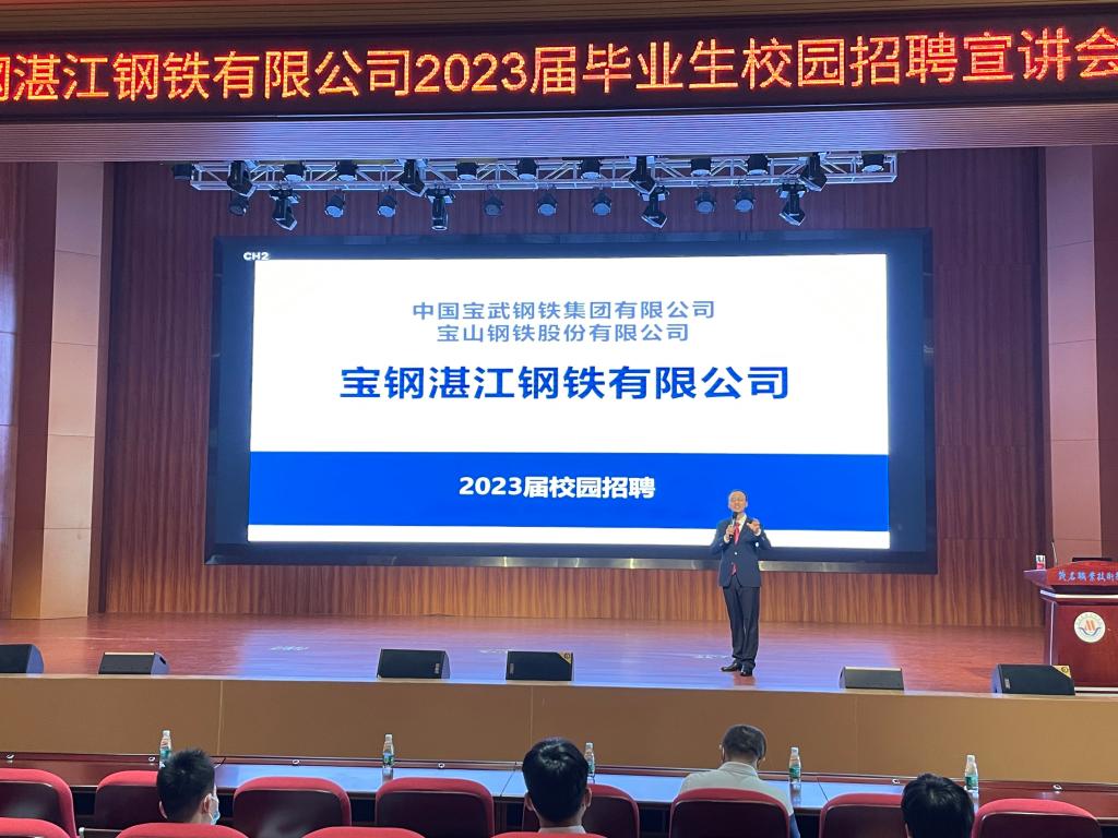 宝钢湛江钢铁有限公司(简称“湛江钢铁”)是全球领先的现代化钢铁联合企业宝钢股份最具发展潜力的四大生产基地之一,是新时代钢铁业更加绿色、更高效率、更高质量、更可持续的典范工程。如果说中国宝武引领世界钢铁业的发展方向、宝钢股份引领中国宝武的发展方向,那么湛江钢铁则“引领三次方”,引领着宝钢股份的发展方向,并正向着“打造世界最高效率的绿色碳钢制造基地”坚定前进。加入宝钢二次创业的湛江钢铁“梦之队”,是众多985、211高校学子的完美选择。茂名职业技术学院作为湛江钢铁在广东的3所优质合作高职院校之一,一直致力于推动“价值观+知识+技能+创新”人才培养模式的探索与实践,我们培养的学生由于“好思想、好品行,用得上、下得去,用得好、留得住”而备受宝钢的欢迎和好评。央企的巨大影响力和优厚的福利待遇,也让湛江钢铁成为了众多茂职院学子走进职场的不二选择。