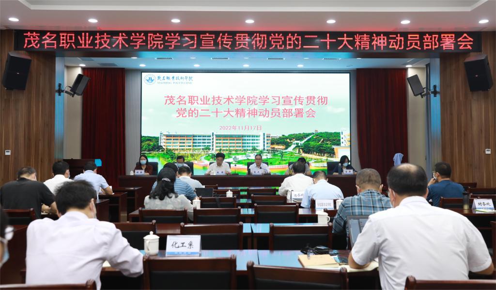 11月17日上午,学院在北校区图书馆多功能报告厅召开学习宣传贯彻党的二十大精神动员部署会,专题学习党的二十大精神,并对学院做好学习宣传贯彻工作进行了动员部署。学院党委副书记、院长张庆主持会议并领学了党的二十大报告,党委委员、副院长谈毅宣读了《茂名职业技术学院学习宣传贯彻党的二十大精神工作方案》,党委书记扶国作动员讲话。学院领导班子成员、各单位(部门)负责人、党总支副书记三十多人参加会议。