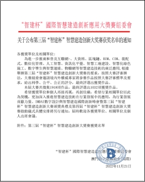 “智建杯”国际智慧建造创新应用大奖赛由澳门建筑资讯模型协会、香港建筑信息模拟学会、粤港澳大湾区城市建筑学会(香港)主办,内容涵盖互联网+、大数据、区块链、BIM、CIM、装配式、数字化管理、人工智能、信息化平台、智慧工地建设、智能化绿色施工、数字孪生与智慧运维、物联网等智慧建造技术的广泛应用,覆盖业内多项施工技术。本次大赛作品奖共分为设计组、施工组、软件组(含CIM)、综合组、装配式组(含预制部品部件、钢结构、装配式装修等)、论文组、创新组(含应用在智慧建造方面的QC成果、工法、专利、BIM技术等突出亮点)、院校组、智慧工地组九个模块,共吸引1918项作品参评。在土木工程系的精心组织和曾浩、高林海老师的悉心指导下,茂职院BIM工程中心陈泓章、黄毓凯、梁伟雄、蔡晓谊、杨少佳5位同学积极筹备,并于2022年9月提交了最终成果。疫情期间,我校学子面对经验不足、电脑配置较差等困难,以必胜的决心挑战本届智建杯。最终,团队凭借出色的作品,在院校组实现新突破,喜提金奖。
