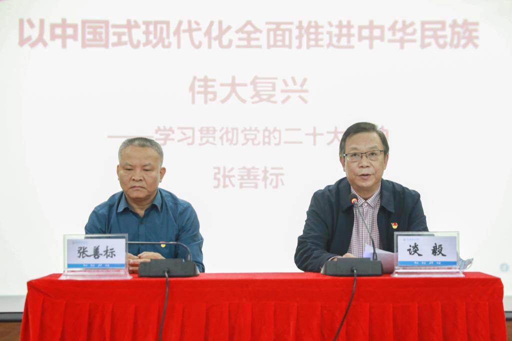 报告会上,张善标以《以中国式现代化全面推进中华民族伟大复兴》为题,从深刻领会党的二十大召开的重大意义、深入领会党的二十大报告的主要内容、深刻领会党的二十大报告的重要精神三个方面深入浅出、旁征博引地对党的二十大精神进行了全面地解读。