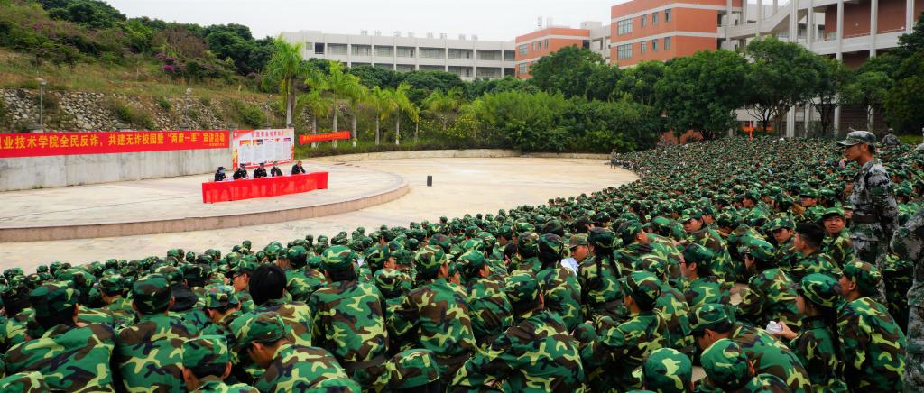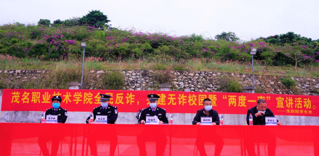 12月5日,学校分别在北校区广场和南校区智慧广场开展“全民反诈,共建无诈校园”暨“两度一率”宣讲活动。茂名市反诈骗中心主任李丹和茂名市公安局电白分局党委委员、副局长杨海华现场指挥。学校学生处负责人谢深根、各系学管负责人、新生辅导员、学生处、总务处相关人员和全体新生参加活动。活动由总务处副处长黄焕宝主持。