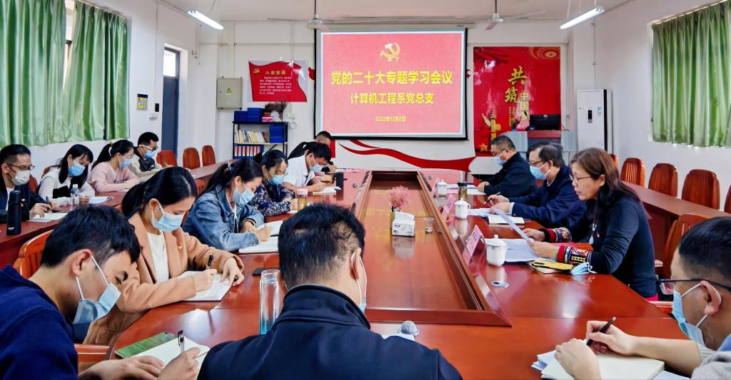 周洁文传达《茂名职业技术学院学习贯彻党的二十大精神工作方案》,结合计算机工程系学习贯彻党的二十大精神落实情况,对系部开展党建工作情况做了汇报。