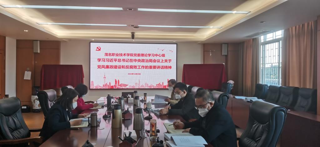 12月30日上午,我校党委理论学习中心组在北校区综合楼三楼第一会议室召开会议,深入学习习近平总书记12月6日在中共中央政治局会议上关于党风廉政建设和反腐败工作的重要讲话。会议由党委书记扶国主持,党委委员、纪委书记钟茹作交流发言。党委理论学习中心组成员,党委办、学院办、马克思主义学院负责人参加了会议。