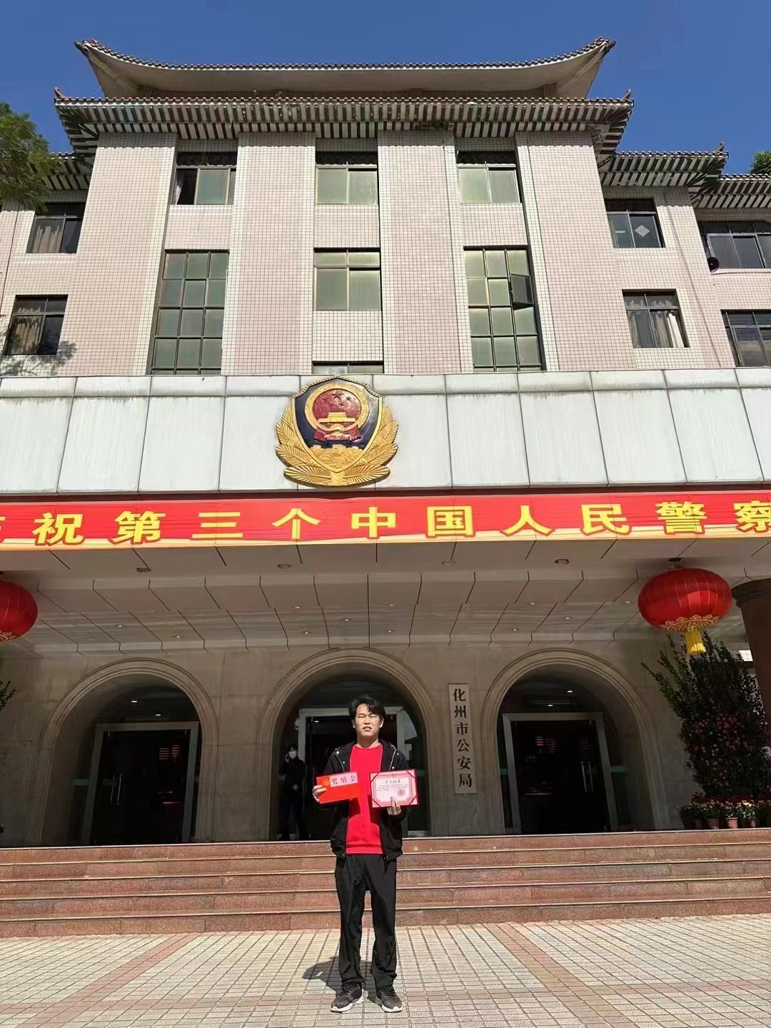 近日,化州市公安局隆重举行化州市“见义勇为”荣誉称号颁发仪式,我校经济管理系2021级商务英语专业黄卷同学获得该荣誉称号。