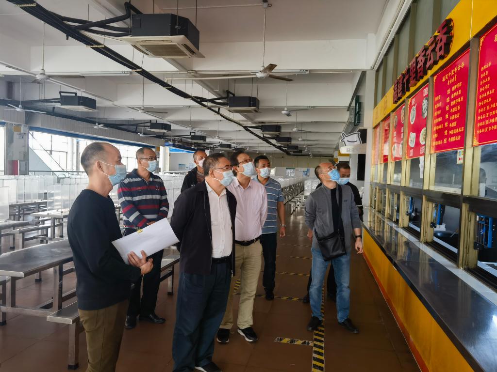 校领导一行先后到学生宿舍区、食堂、医务室、健康驿站等重点场所开展检查,对宿舍区清洁卫生、垃圾收集点设置、食堂开餐准备、医务卫生工作准备、饮用水设备更新、健康驿站准备、校园清洁消毒安排等进行了现场检查和指导。